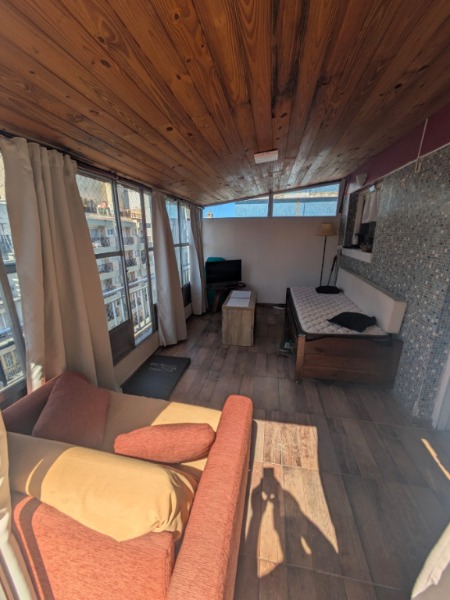 Departamento 2 amb. al frente. Consta de cocina, comedor, baño con ducha habitacion con Placard, con cama de dos plazas. Terraza cubierta en la cual se encuentra cama de 1 plaza y sillón, ideal para estudiar y relajarse, terraza descubierta con mesa de Jardin. Cuenta con wifi. Servicios, más expensas. Requisitos : Mes de adelanto, mes deposito en garantía , mes honorarios de inmobiliaria. Aumento cada 3 meses por ICL. Recibo de sueldo y garantia con recibo de sueldo o Seguro de Caución.